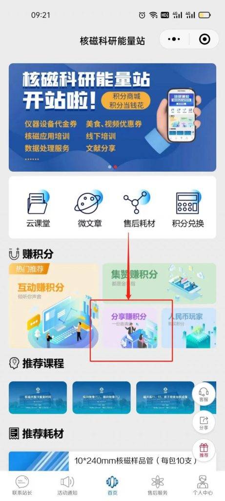 1、點擊分享賺積分