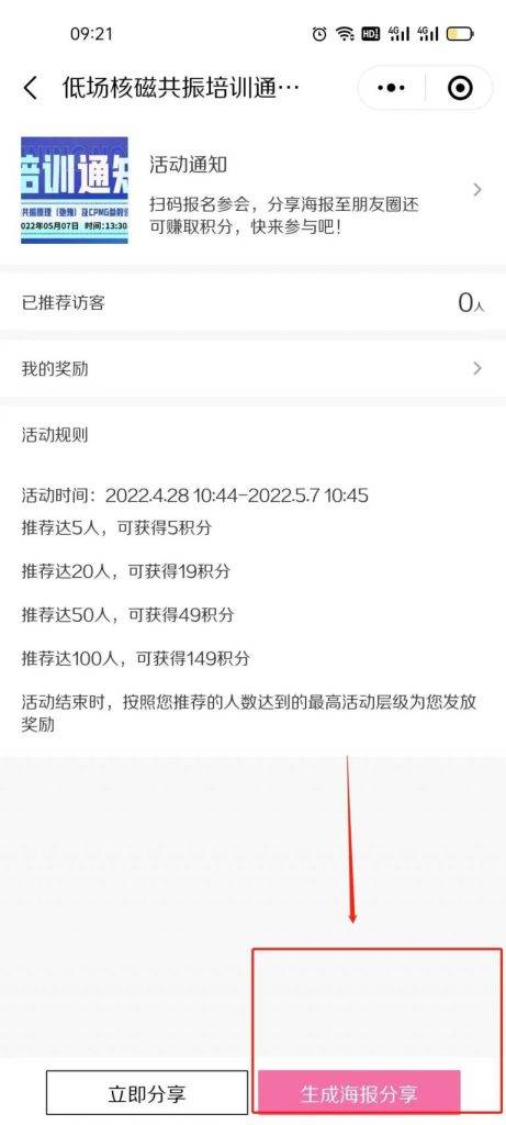 3、生成專屬于自己的分享海報,達到指定人數即可獲取對應積分