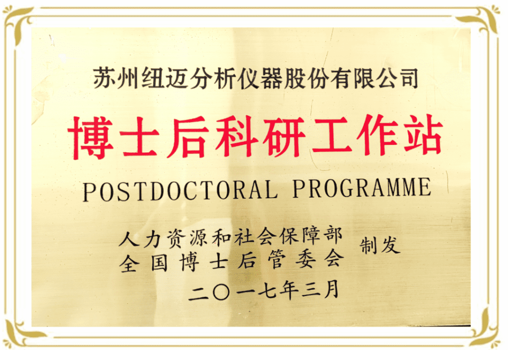 蘇州紐邁分析儀器股份有限公司自2003年成立以來,一貫致力于“低場核磁共振”儀器的研發、生產與技術應用的推廣,產品應用于農業、食品、能源勘探、高分子材料和生命科學等行業領域。該公司發展迅猛,目前已經成為“低場核磁共振技術”這一新興分析儀器產業最具發展活力和潛力的高新企業。?紐邁分析的創新實踐基地博士后工作站也發展迅速,?紐邁分析博士后科研工作站于2014年11月經江蘇省人力資源部和生活保障部批準成立。2017年4月,該博士后科研工作站經國家人力資源和社會勞動保障部批準升格為國家級博士后科研工作站,并于同年7月正式授牌。