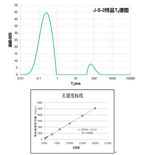 當巖樣孔隙內充滿流體時,流體的量等同于孔隙體積,核磁共振技術測得的弛豫時間譜的積分和,代表了地層巖心中的流體含量,因此如果對弛豫時間譜進行適當的刻度,便能得到巖石的核磁孔隙度。