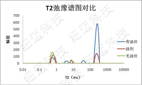 (1)水油特性:采用CPMG測試1種樣本的T2弛豫特性,尋找油劑信號的特征,便于選擇測試參數