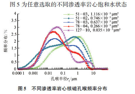 下圖為不同滲透率巖心核磁孔喉分布頻率統(tǒng)計(jì)