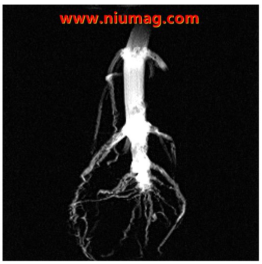 根系在植物生長發育中具有重要作用,但由于根系生長在不透明的土壤中,缺乏快速、準確、無損的原位觀測方法,影響了對植物根系的深入研究。傳統的根系研究方法采樣破壞性大、工作量大、準確性較低。核磁共振成像是一種無損檢測手段,成像分辨率較高?;谥参锇l育研究的核磁共振成像裝置則給植物根系全生育期成像提供了一個更加優越的研究平臺。可持續研究同一植物不同生長期的根系發育情況。以下是植物根系核磁共振成像圖: