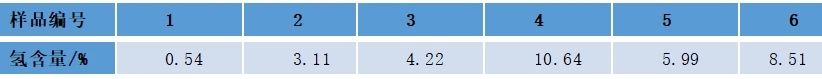對不同煤矸石樣品,使用紐邁低場核磁共振設備進行氫含量的測試,將不同樣品的氫信號質量歸一化后帶入標線計算,得到不同煤矸石的氫含量測試結果,其測試結果如下: