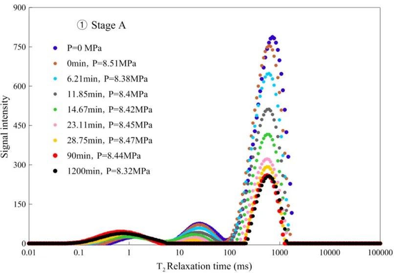 圖二:水合物形成A階段T2弛豫時(shí)間分布
