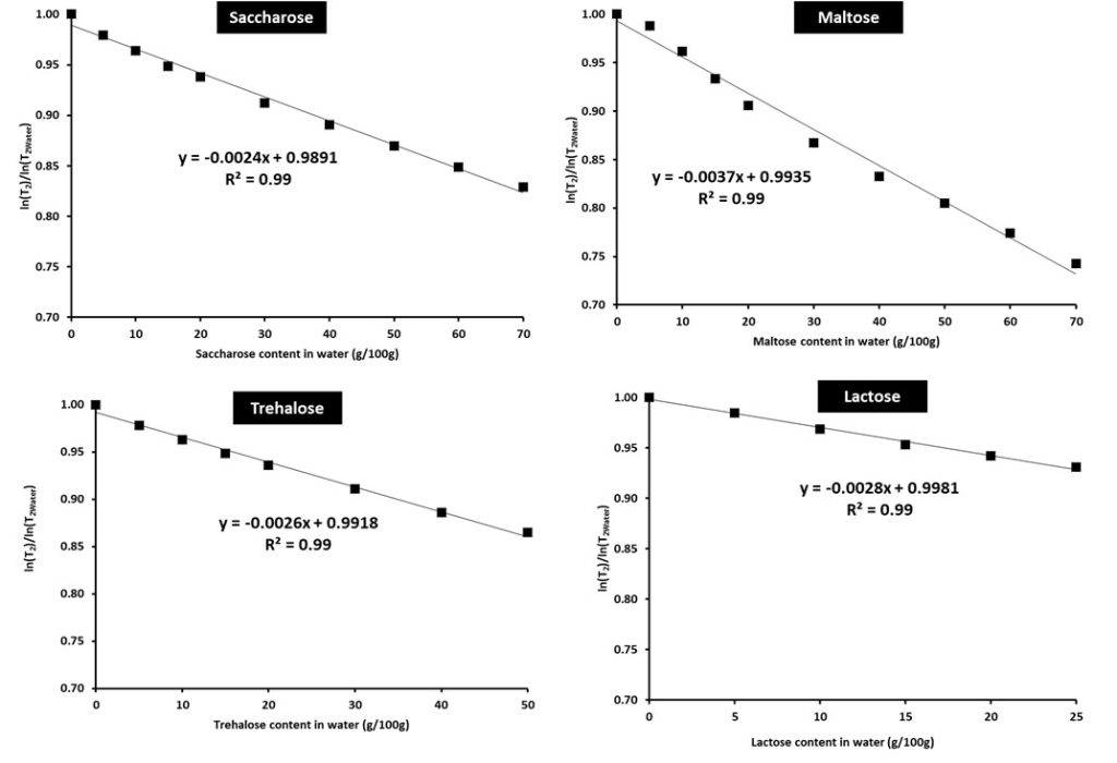 快速識別:驗證TD-NMR能否通過分析弛豫信號,快速區分蔗糖、乳糖、麥芽糖和海藻糖這四種常見的、分子式與分子量相似的二糖。