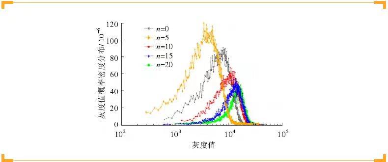 圖6 不同循環次數的核磁共振成像灰度值概率分布片