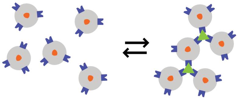 磁納米傳感器探測機制的基本原理是基于選擇性納米顆粒與靶標相互作用時在分散和聚集狀態之間切換的能力,狀態轉變伴隨著溶液水質子的自旋-自旋弛豫時間(T2)的變化。通過臺式小核磁可以敏感的捕獲這一變化,從而實現對靶標的快速檢測。