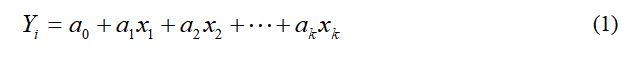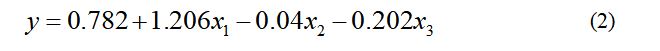 基于正交實驗結果,在兩個假設下建立了多元線性回歸模型:(1)其他因素對殘余水飽和度的影響可以忽略不計,(2)實驗室規模的巖心驅替實驗代表了實際的二氧化碳地質封存項目。使用SPSS軟件對孔隙度、壓力、注入壓差和殘余水飽和度的數據進行分析,將后者設置為因變量,將前三個設置為自變量。因變量和自變量之間的一般關系由方程(1)定義。