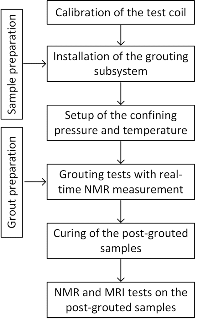 實驗設備采用蘇州紐邁分析儀器股份有限公司研制的MacroMR12-150H-1型低場核磁共振巖石滲流過程實時在線分析與成像系統,主要由核磁共振測試模塊和雙缸恒壓恒流驅替模塊組成,可實現巖石注漿滲透過程的實時核磁共振測試分析,如圖1。