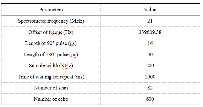 表1 LF-NMR實驗參數