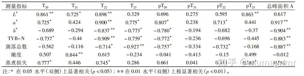 LF-NMR T2與測量指標的相關系數